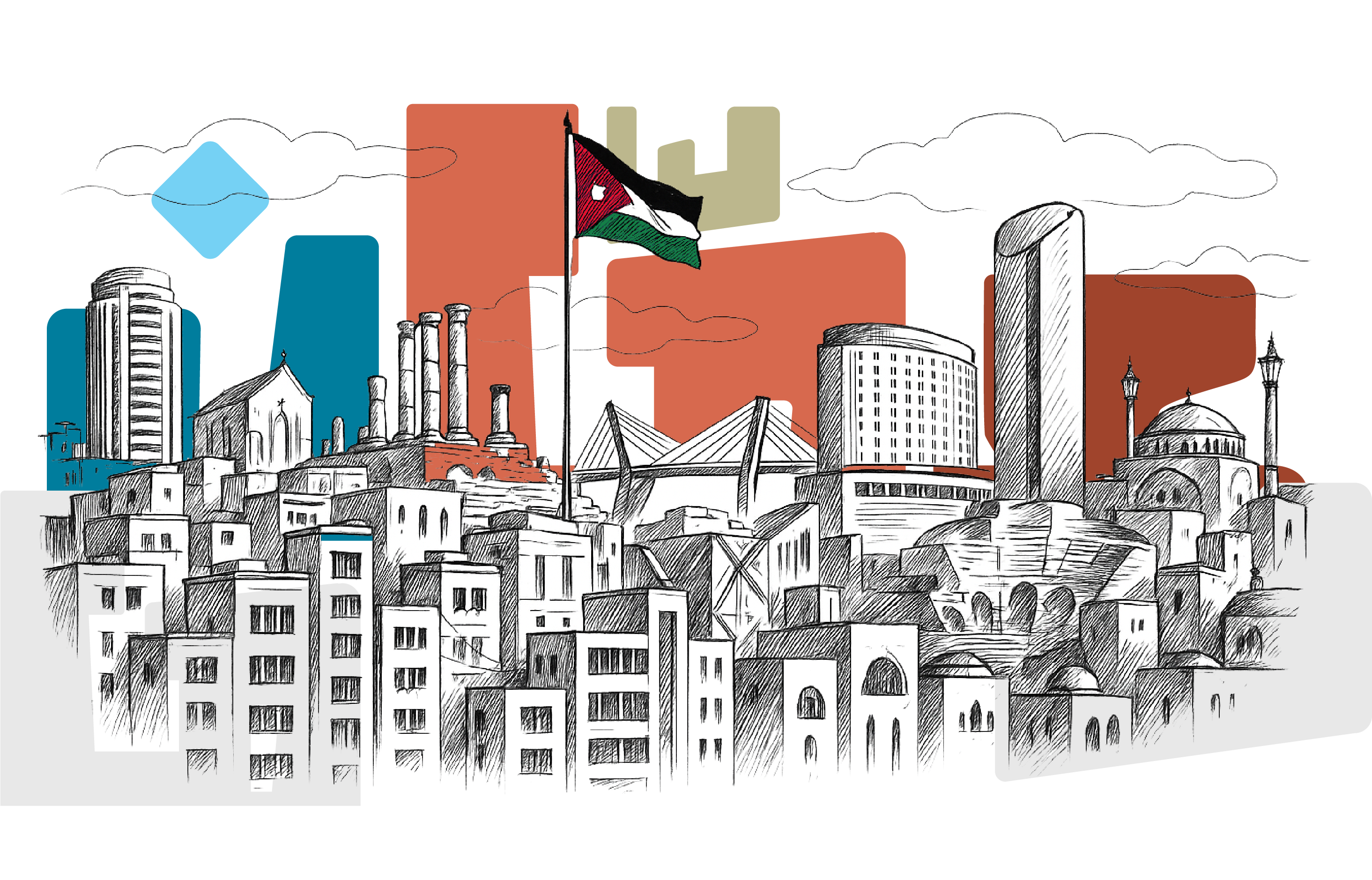 عمان، عاصمة الأردن وأكبر مدنه، هي مزيج رائع من التاريخ العريق والحيوية العصرية. بُنيت على سبعة جبال، وتضم أكثر من 4 ملايين نسمة، وكانت مأهولة بالسكان منذ آلاف السنين، مما جعلها نقطة التقاء للحضارات من العمانيين القدماء حتى العصر الحديث. اليوم، تقف عمان شاهداً على التراث الغني للأردن ومستقبله المشرق. من آثار القلعة والمسرح الروماني إلى شوارع وسط البلد النابضة بالحياة وأحياء عبدون والصويفية الحديثة، تقدم المدينة للزوار تجربة لا مثيل لها حيث يروي كل ركن قصة من قصص النجاح والمواكبة والاستمرارية